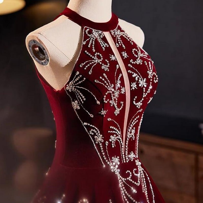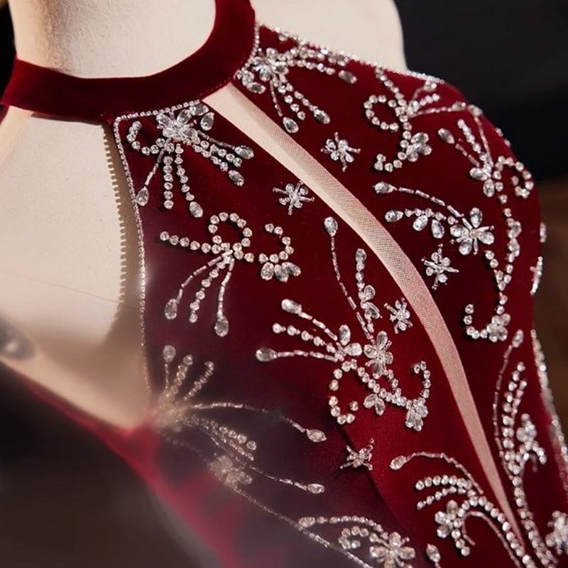 ホルターネックビジュードレス D0048