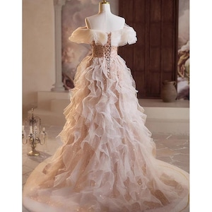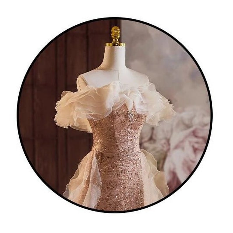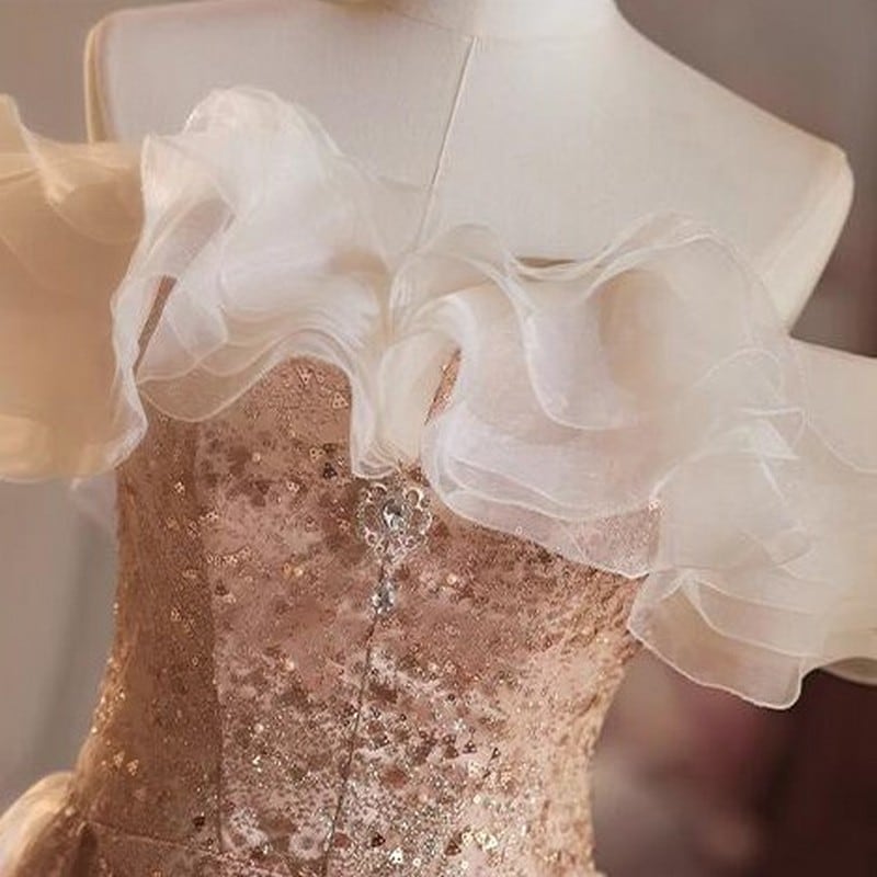 オフショルダーチュールドレス D0065