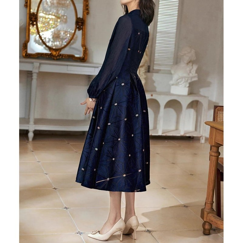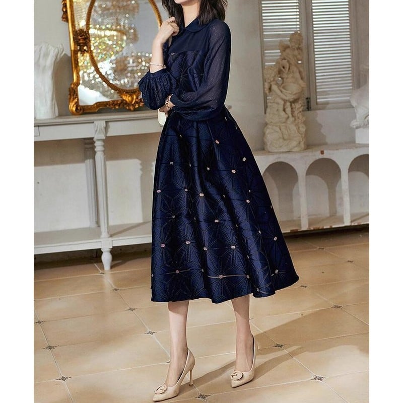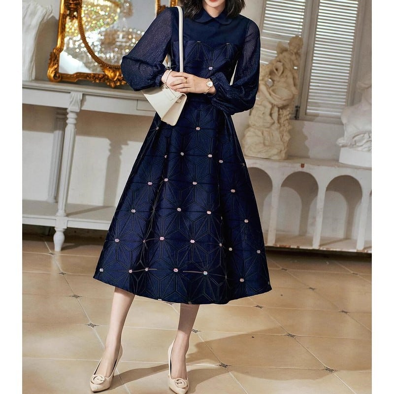 丸襟パフスリーブドレス D0093