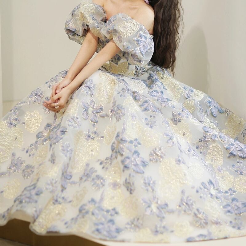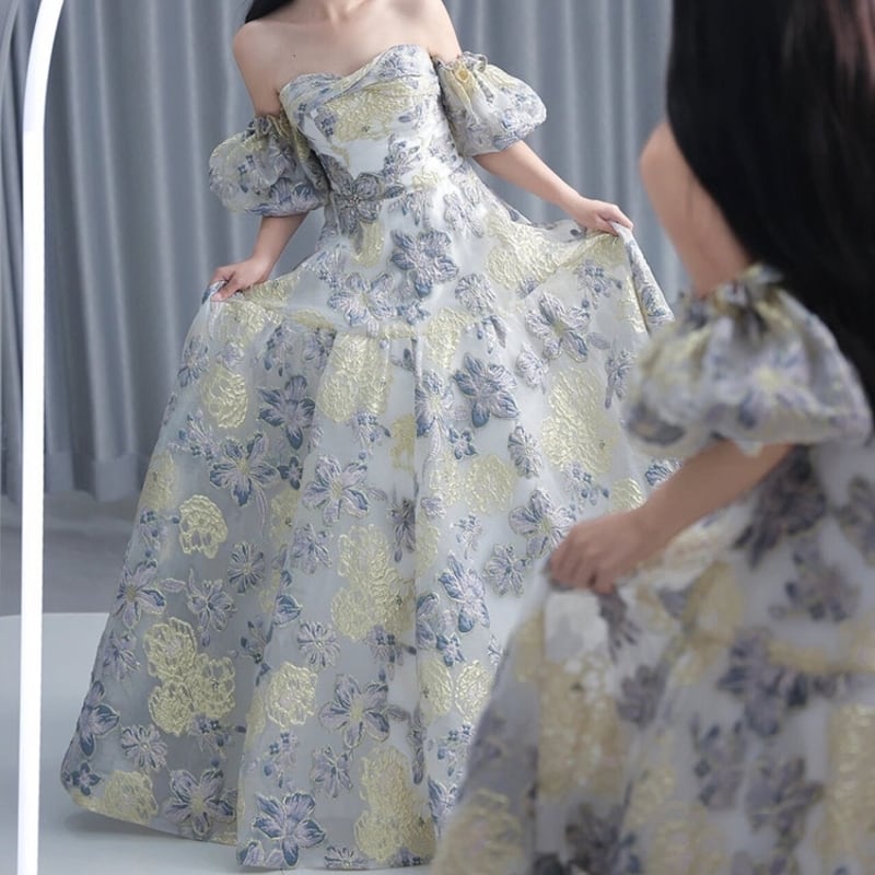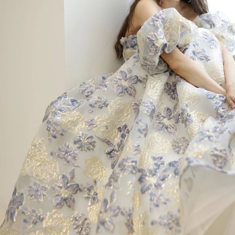 大花柄と刺繍の存在感がガーリーなロングドレスです。