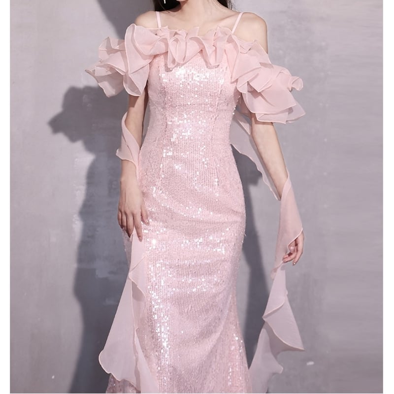 シフォン&スパンコールマーメイドドレス D0133