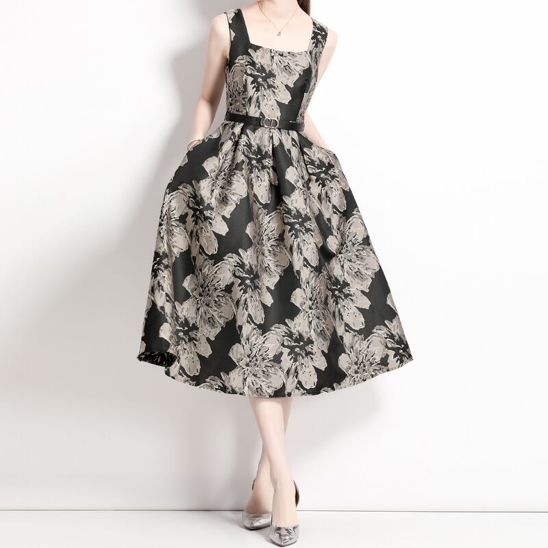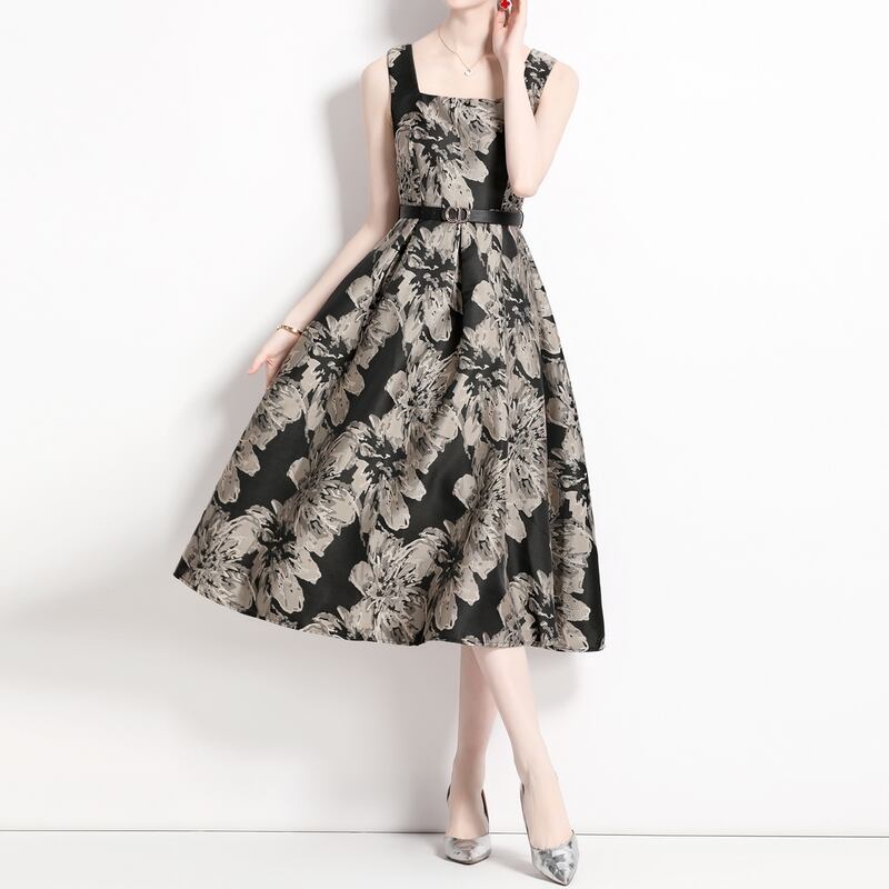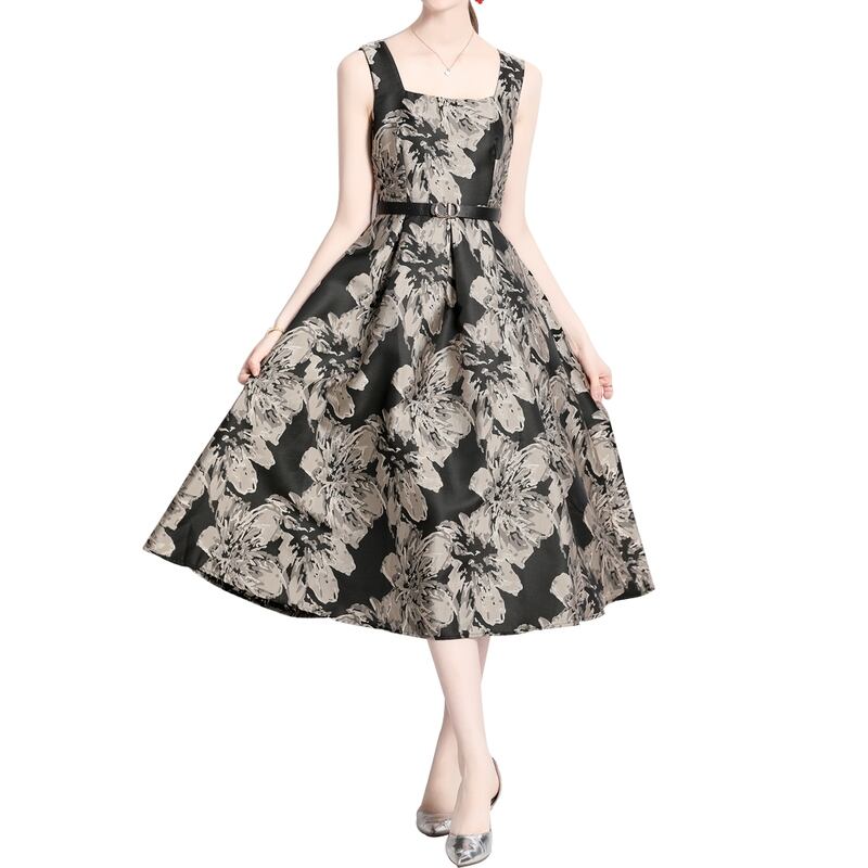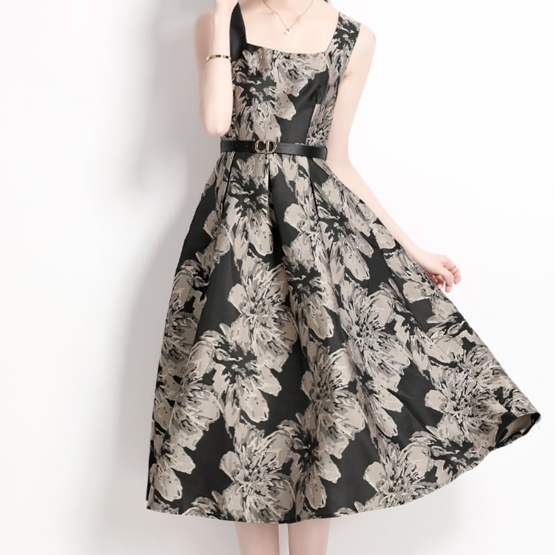 バックジップとプリーツ入りのフレアスカートでスタイルを綺麗に見せてくれます。