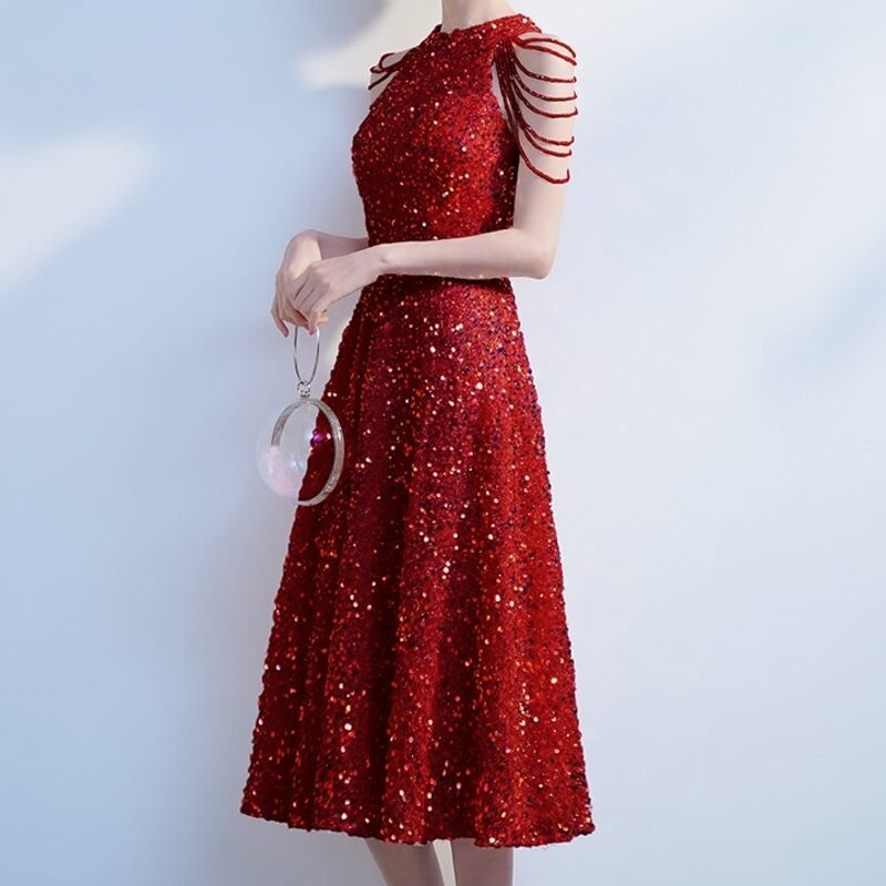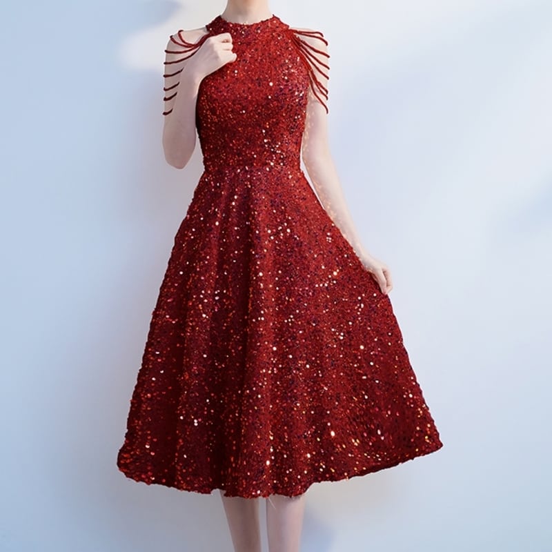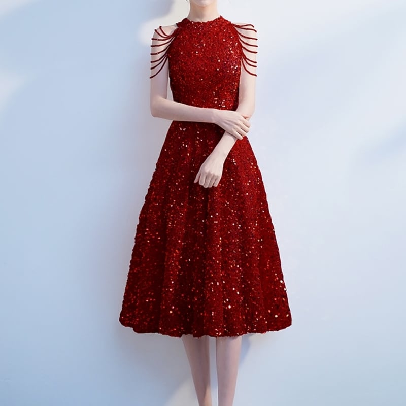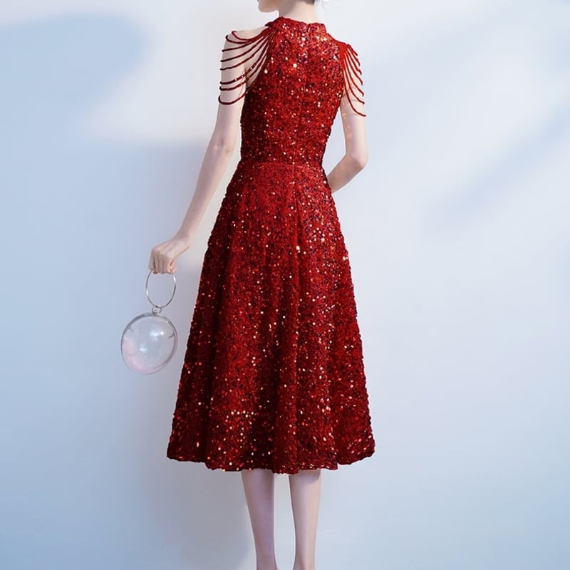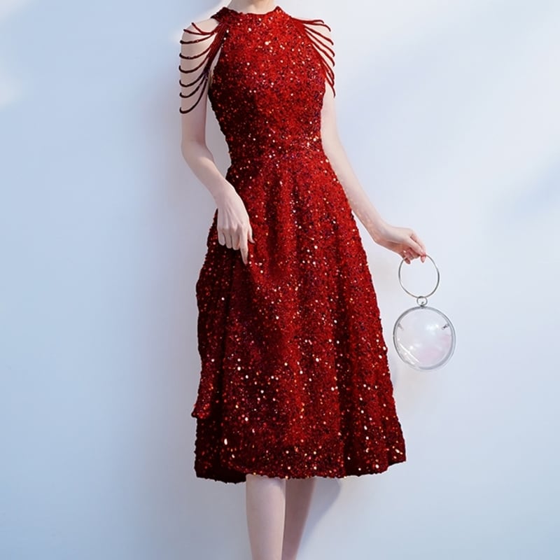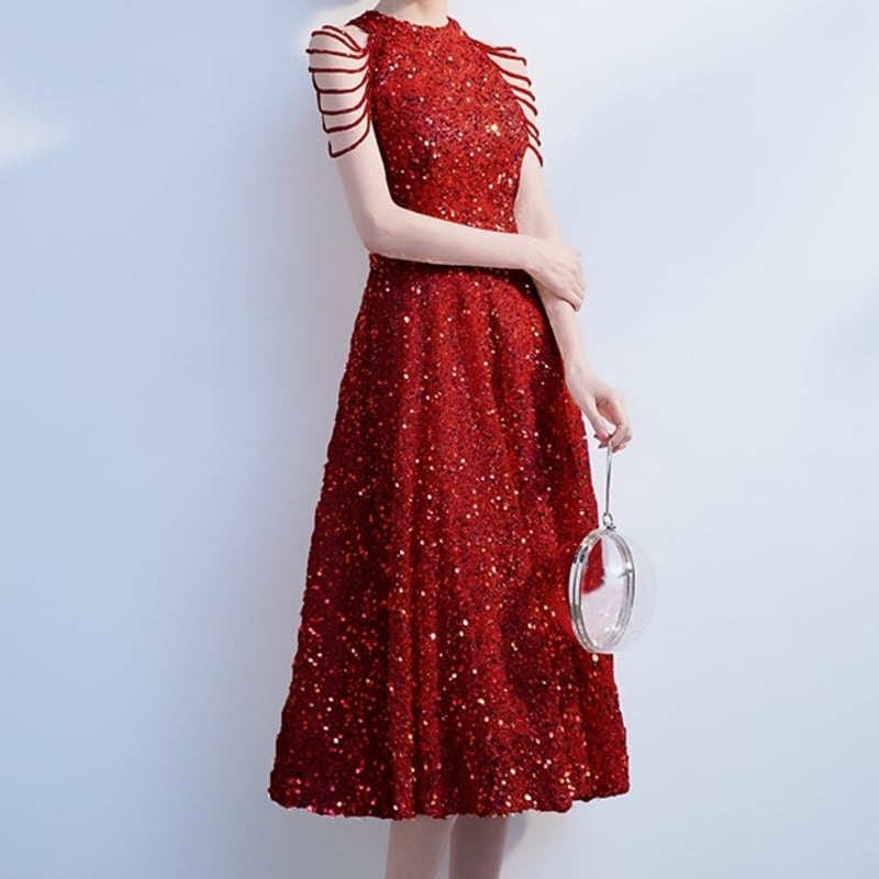 スパンコールをふんだんにあしらったきらめくデザインが上品で存在感抜群です。