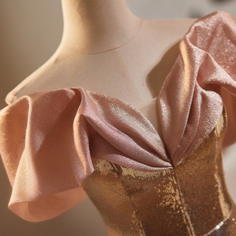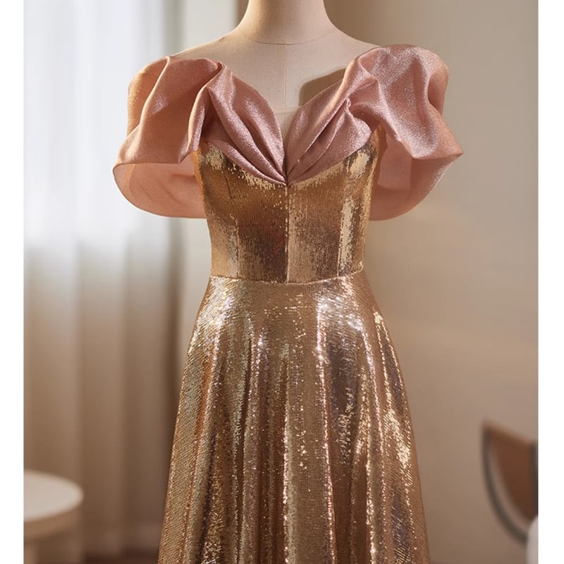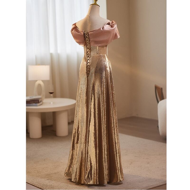 バックのレースアップがドレッシーで、メタリックなゴールドが上品なデザインです。