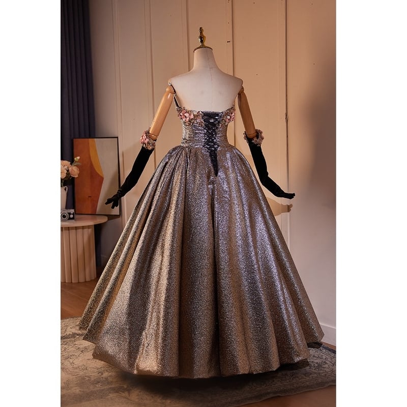 グローブとデコルテにお花モチーフをあしらったロングドレス。
