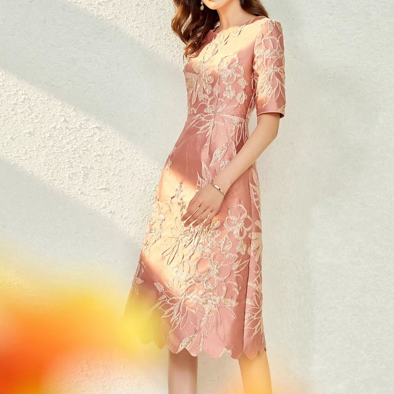 花柄刺繍がエレガントな、裾がスカラップのドレスです。