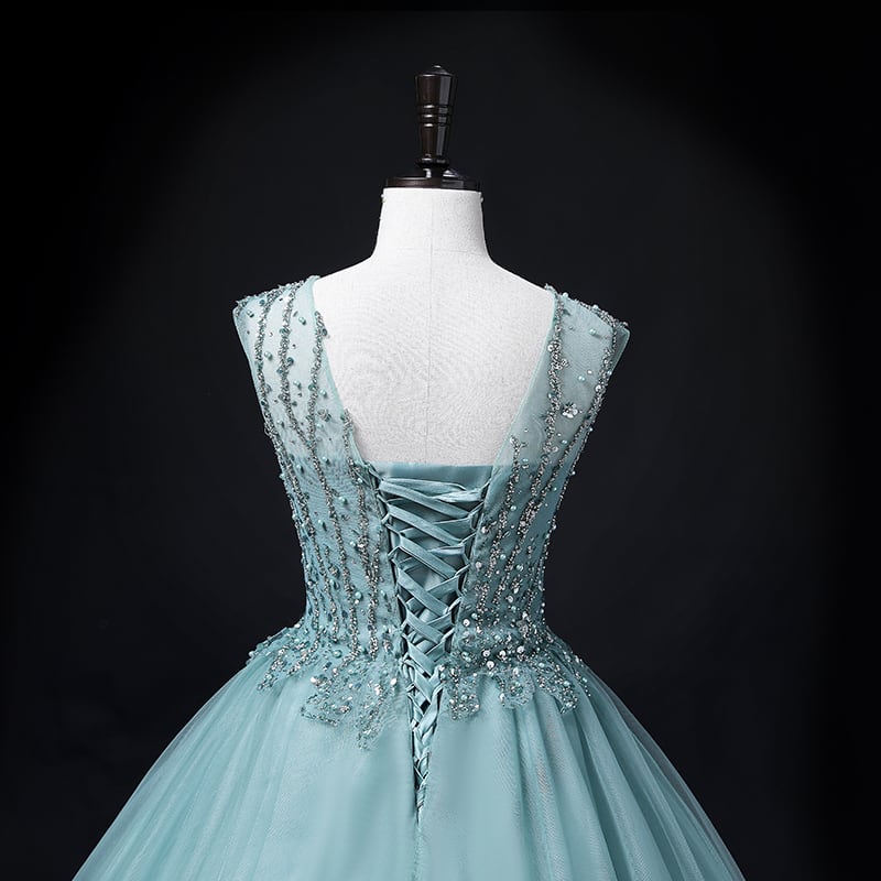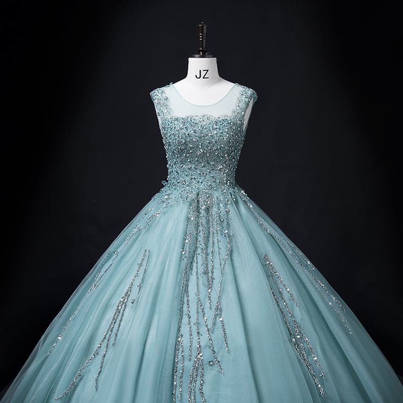 身ごろやスカートに施されたビーズ刺繍が美しく輝く上品な1着です。