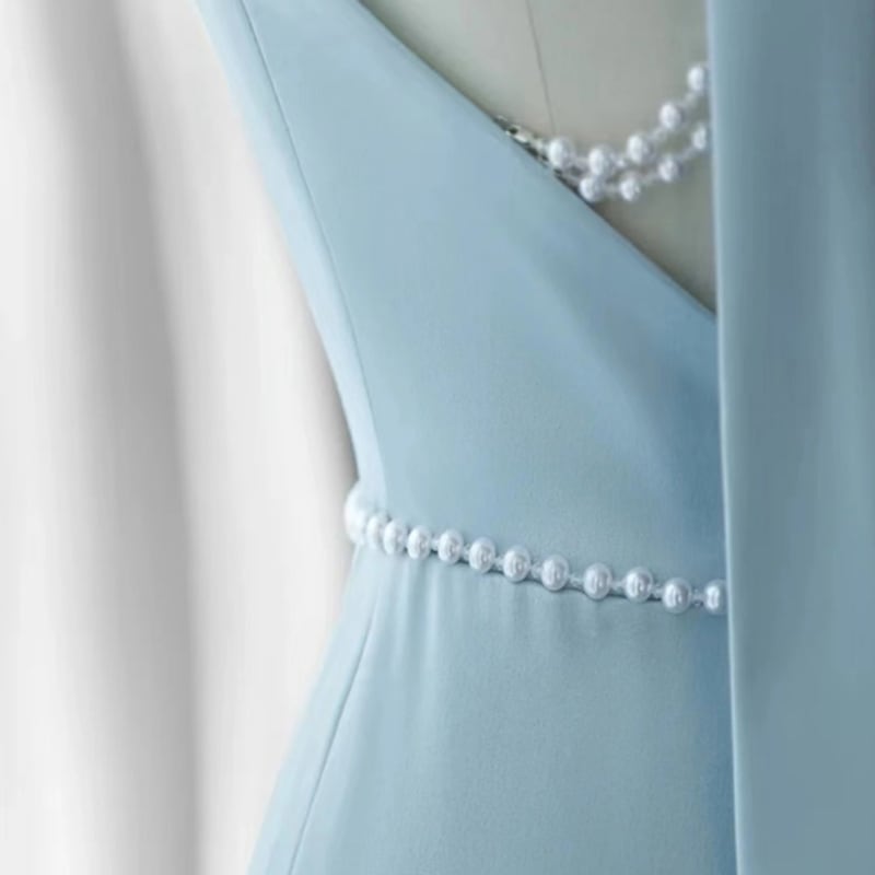 パールチェーンがアクセントになり、プリーツがこなれたニュアンスをもたせる大人可愛い一着です。