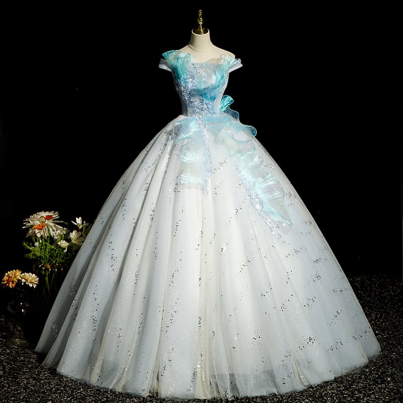 スパンコール刺繍とグリッターを散りばめたスカートでプリンセスのような装いが完成します。