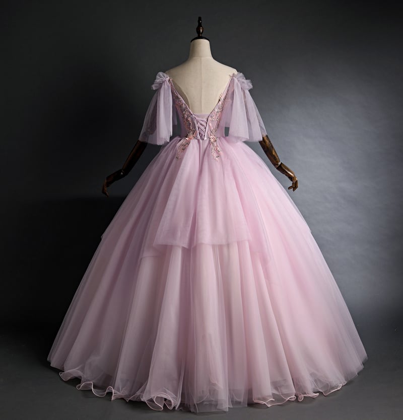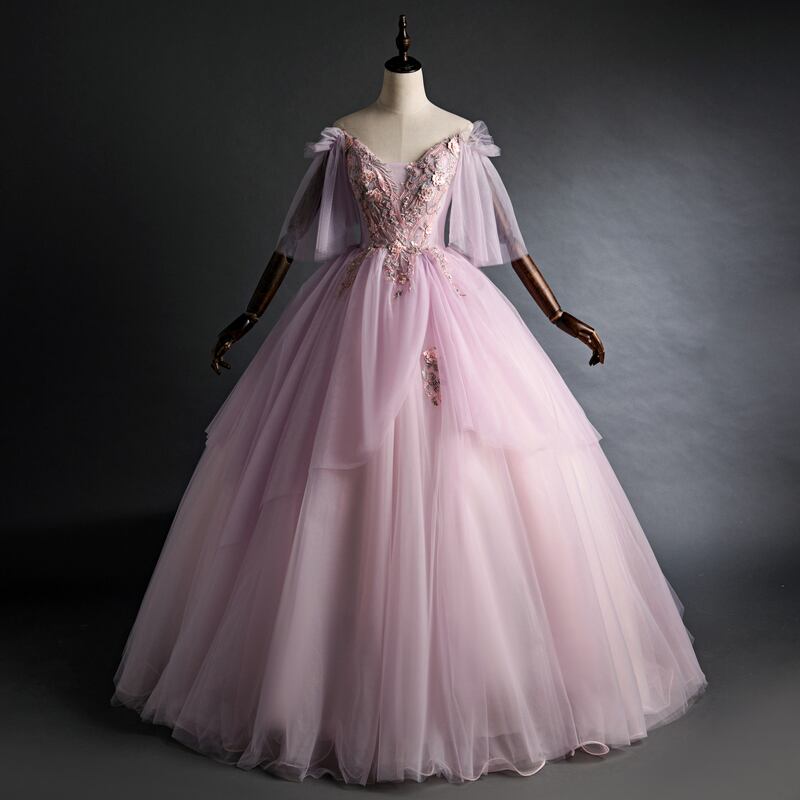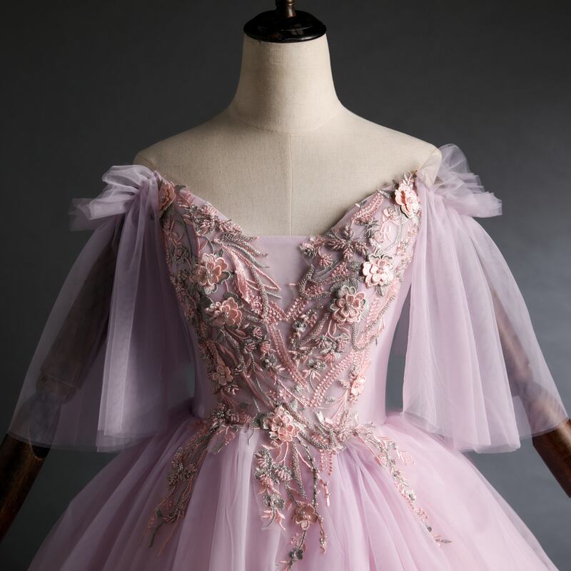 ゴージャスな花柄刺繍とアシンメトリーなチュールスカートのシルエットがシックな一着です。