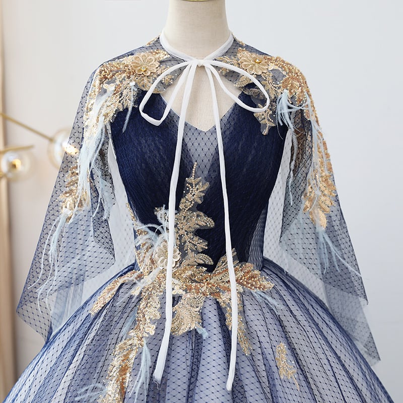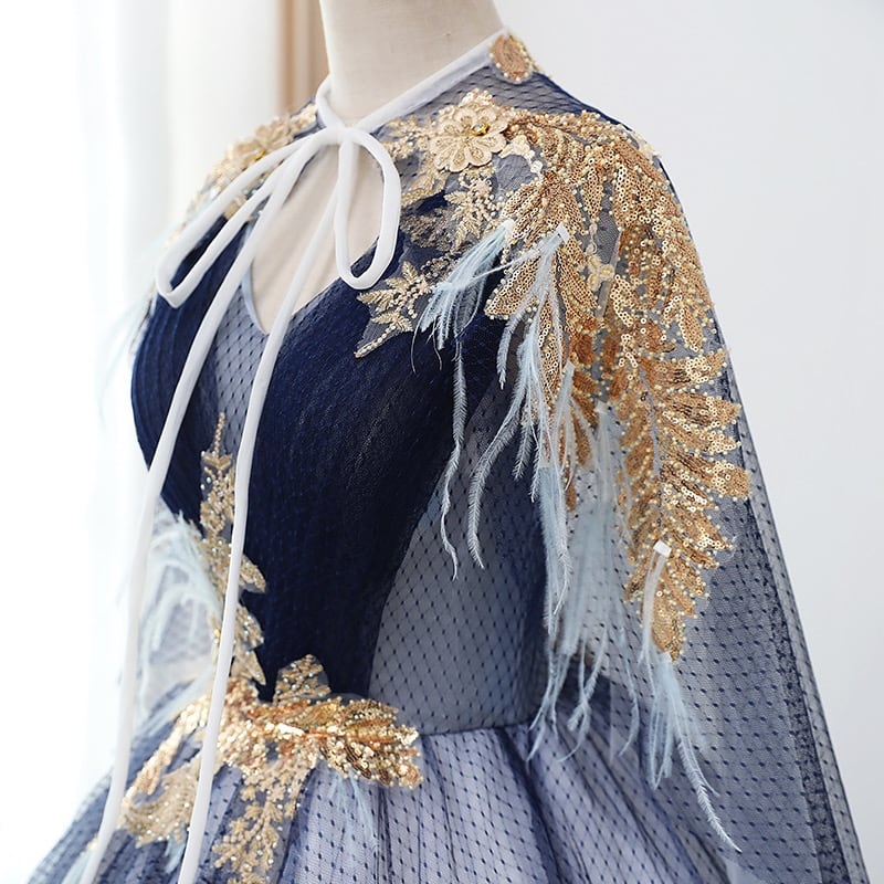 着脱可能なチュールのケープが可愛いノースリーブのロングドレスです。