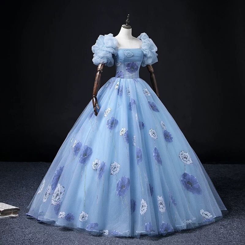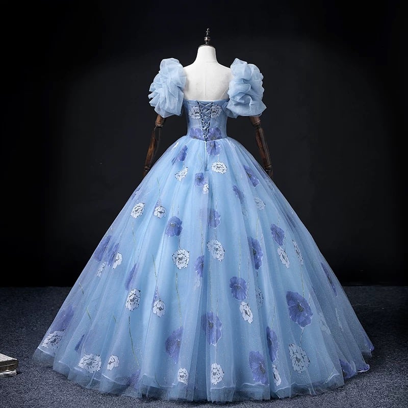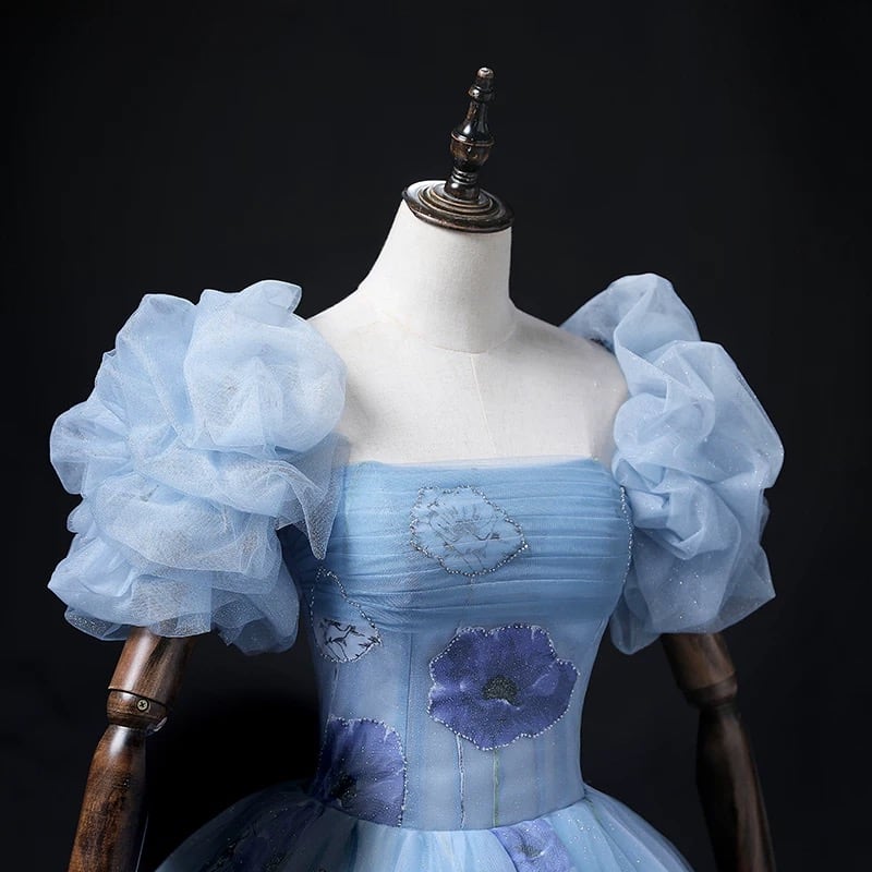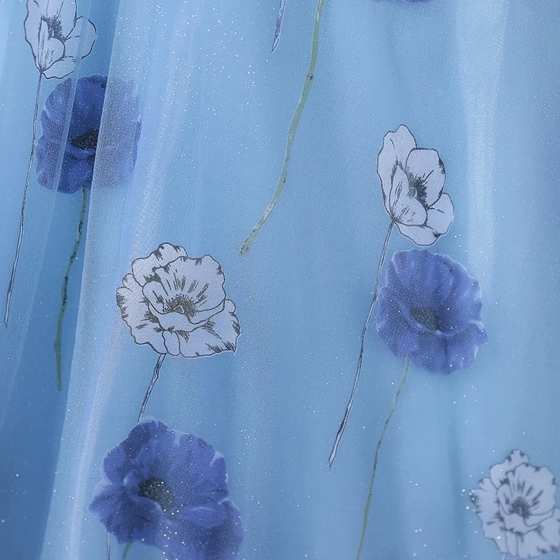 透け感が軽やかなチュールと大花柄がロマンティックで