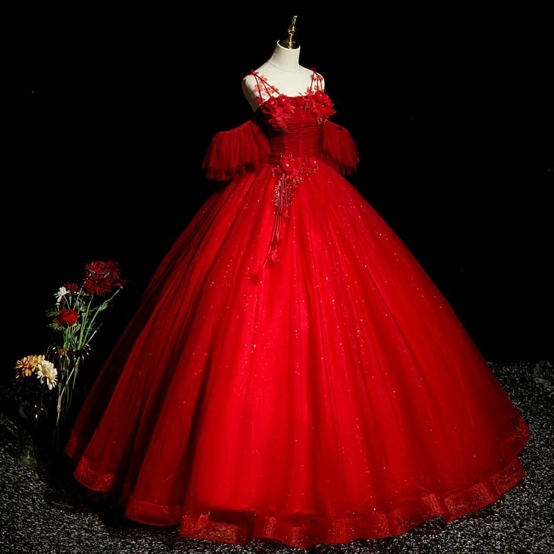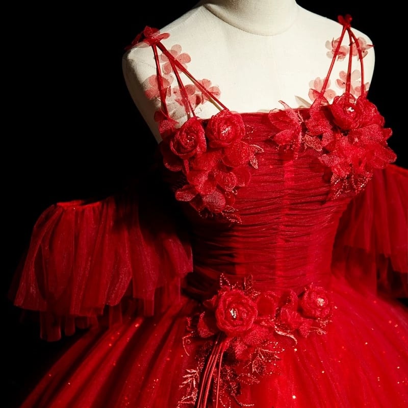 デコルテ周りにフラワーモチーフをふんだんにあしらったロングドレスです。