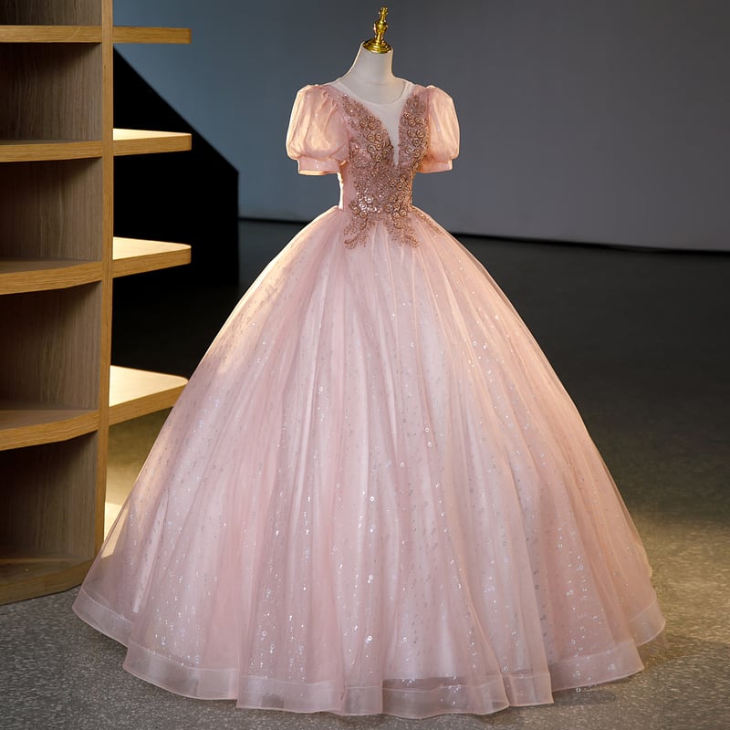 スパンコール刺繍チュールドレス D0358
