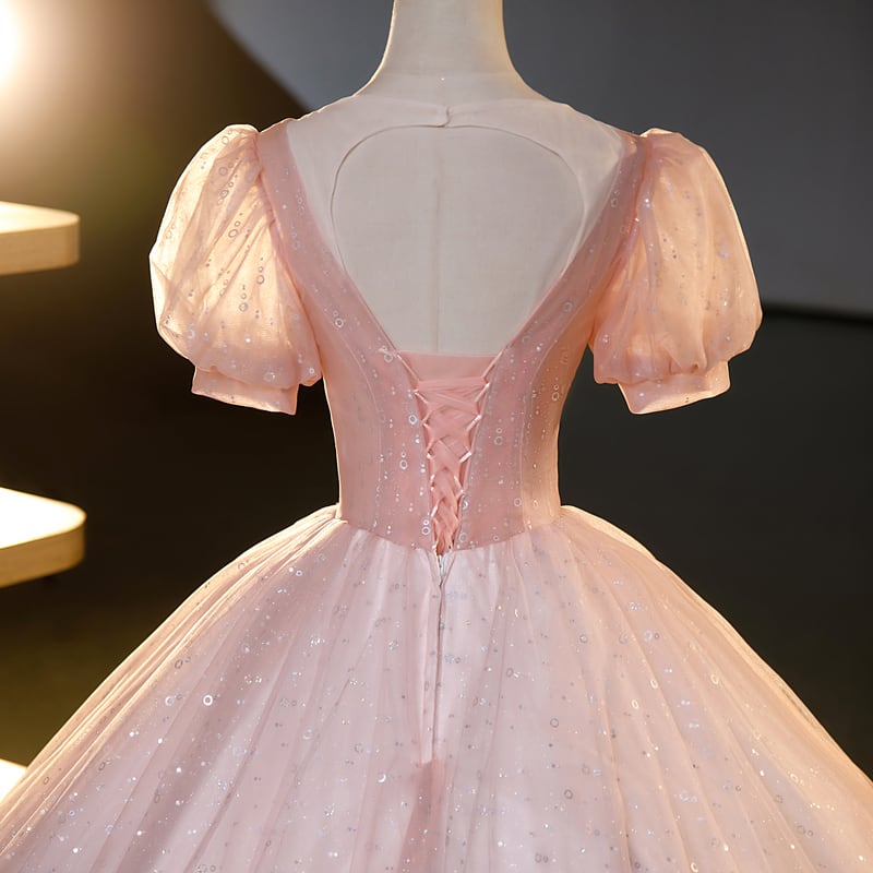 煌めくバブルプリント入りのチュール生地がふんわり華やかなバックオープンデザインです。