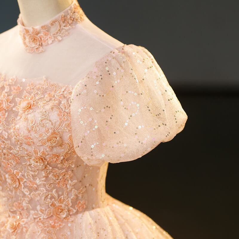 スパンコールが煌めくツヤ感が上品で、襟元の繊細な刺繍がゴージャスな1着です。