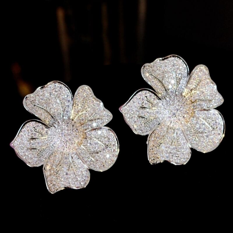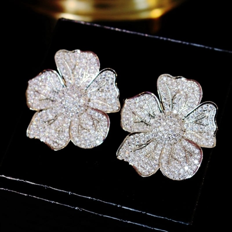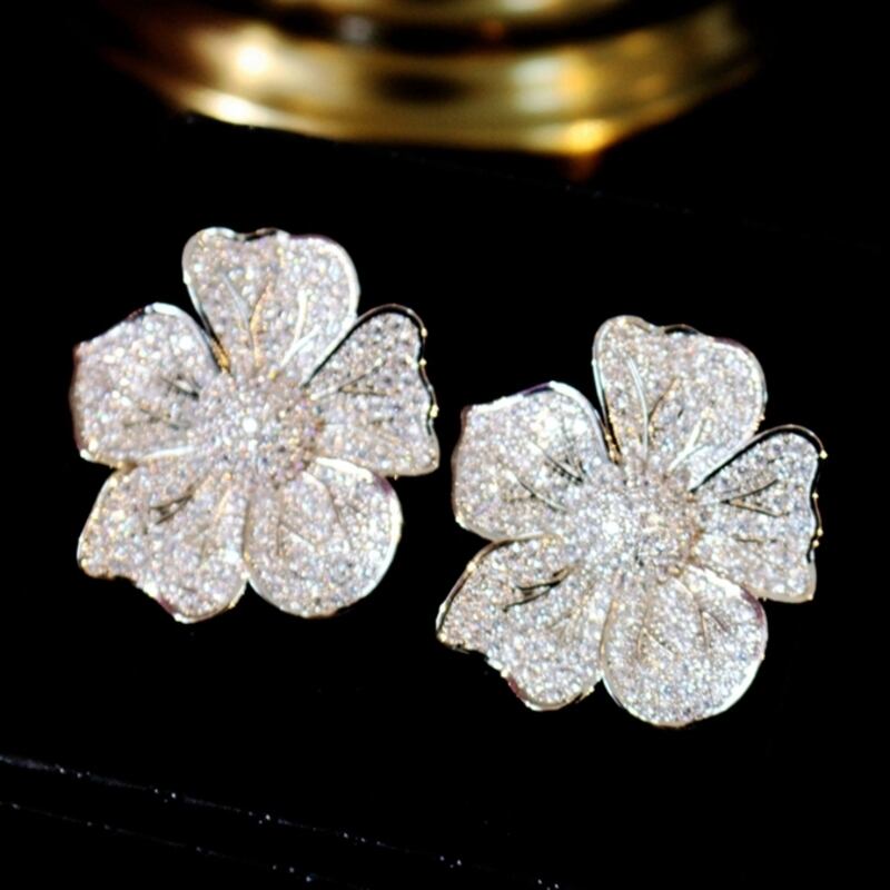 ビジューが煌めく大ぶりのフラワーモチーフが存在感抜群なイヤーアクセサリーです。