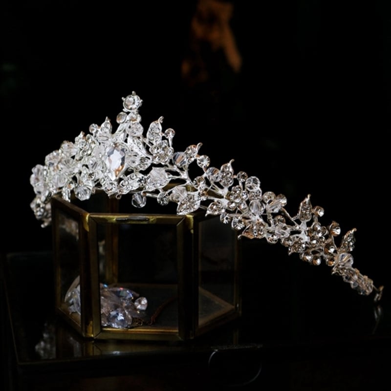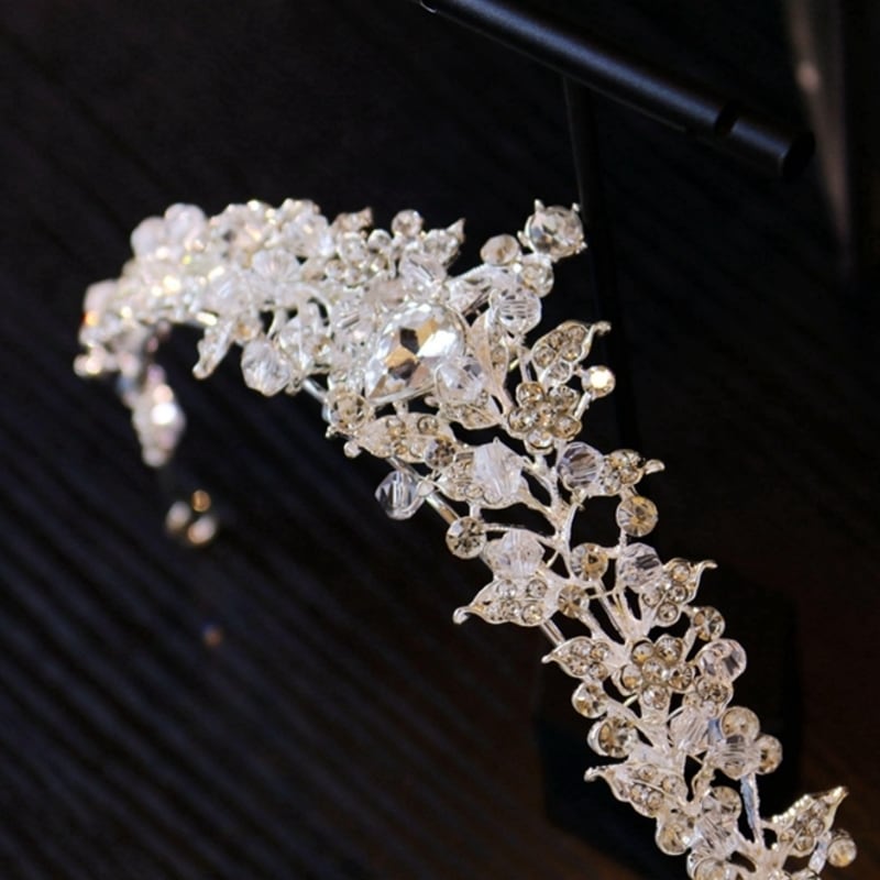 繊細なボタニカルパターンにラインストーンをあしらった、ゴージャスなティアラです。