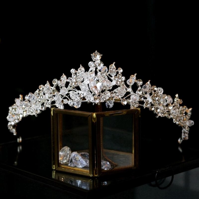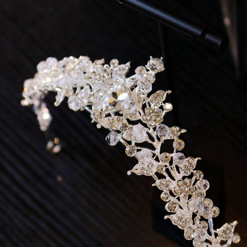 繊細なボタニカルモチーフにラインストーンをあしらった、ゴージャスなティアラです。