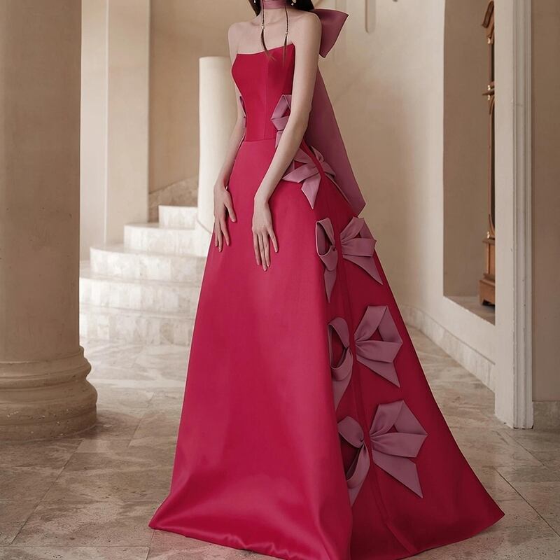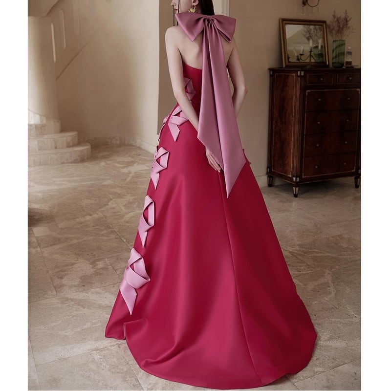 ビッグリボンがガーリーなパッションピンクのロングドレスです。