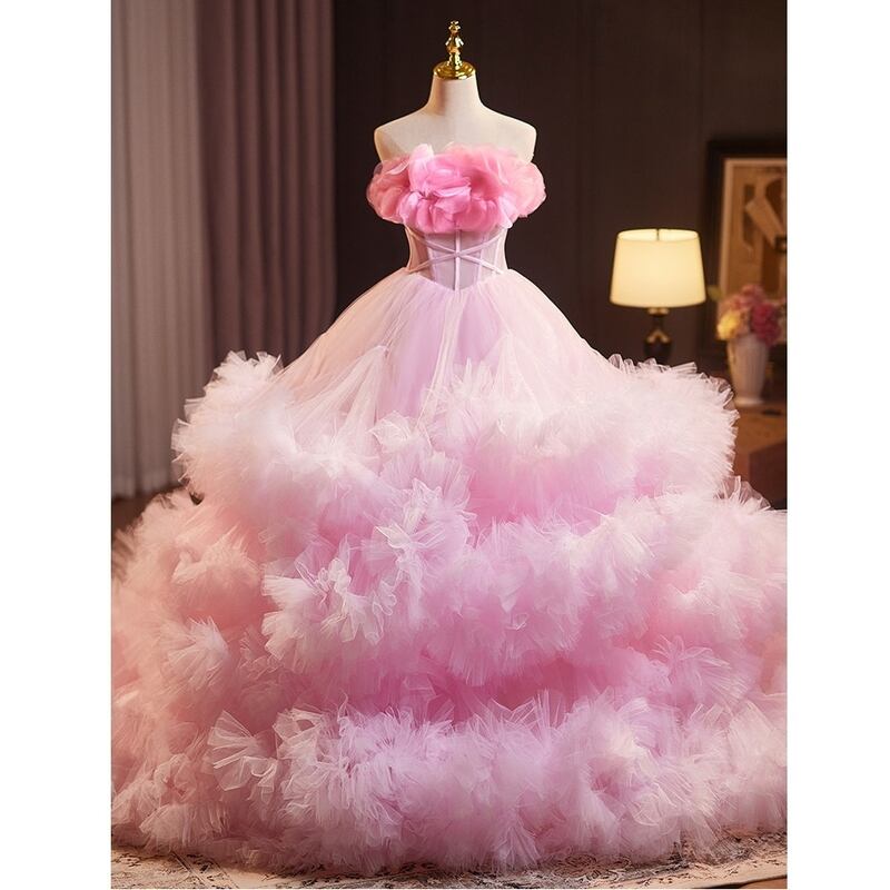 ボリュームたっぷりなメッシュチュチュスカートが主役級の存在感を放つロングドレスです。